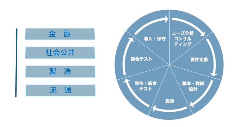 - 金融システムの開発では、40年以上の実績をもとに、専門的な業務スキルを有した技術者が多数おり、効果的かつ