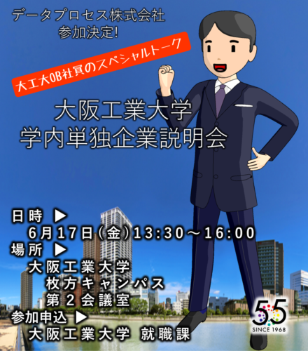 2022年6月17日(金)、大阪工業大学 枚方キャンパスで開催予定の「学内単独企業説明会」に参加します。