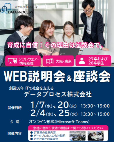2027年新卒採用に向けて、「WEB会社説明会&若手社員との座談会」を2026年1月・2月に開催します。