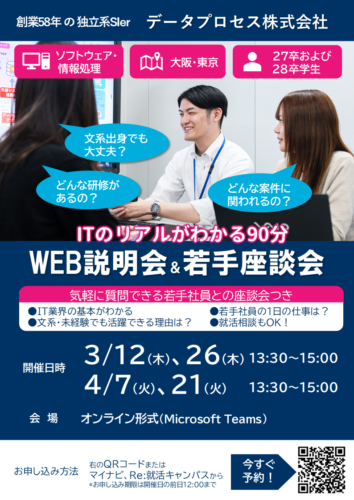 2027年卒向け 会社説明会・社員座談会 ・IT業界の仕事について |