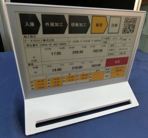 弊社ブースでは、環境に配慮した省電力駆動と太陽光下でも良好な視認性を併せ持つ、新しい表示デバイス「電子ペーパーサイネージ(EPS)」や屋内CO2環境センサ、アグリーフIoTプラットフォームを組み合わせた「環境モニタリングシステム」の実機デモ実演を行いました。製造業の現場では生産ラインの見える化、省人化、遠隔での保全など、製造業DX(デジタルトランスフォーメーション)をご提案しました。