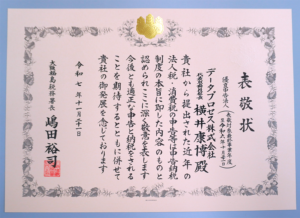 この度、大阪福島税務署より優良申告法人として表敬いただきました。弊社が優良申告法人として表敬を受けるのは、