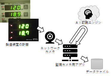 計器監視システムには、装置に専用のカメラをネジ止めする等、設備工事が必要なものもある。実証検証を進める中で、多少であれば、画像の傾きや位置ズレは許容されることに気が付く。磐田化学工業様のアイディアで、ネットワークカメラ画像でも試してみると良好な結果を得られた。市販品のネットワークカメラを活用できるので、設置にかかる手間とコストも削減でき、追加導入のハードルも下げることができた。